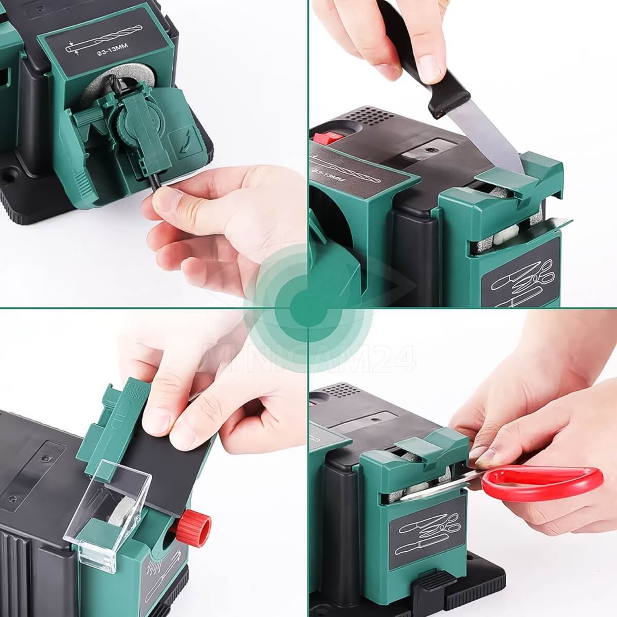 Станок предназначен для выведения режущего угла и первоначальной заточки инструментов, после чего при необходимости можно продолжить обработку вручную с использованием камней более мелкой зернистости. Модель рассчитана на домашнее использование, оснащена диском зернистостью P150 и работает с мощностью 65 Вт. Для долговечной и безопасной эксплуатации не рекомендуется оказывать излишнее давление на диск во время заточки.